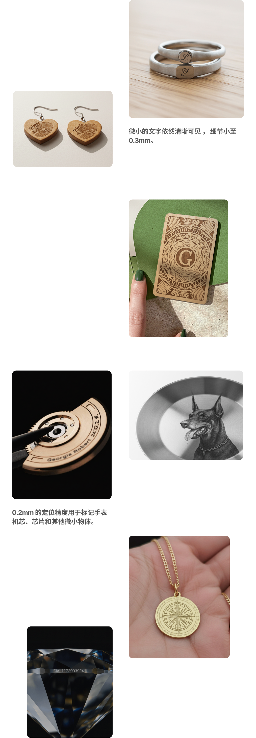 一台机器即可支持内雕刻和表面雕刻,配备双镜头,方便切换。每种模式都提供宽大的工作区域,完美平衡了功率和精度。